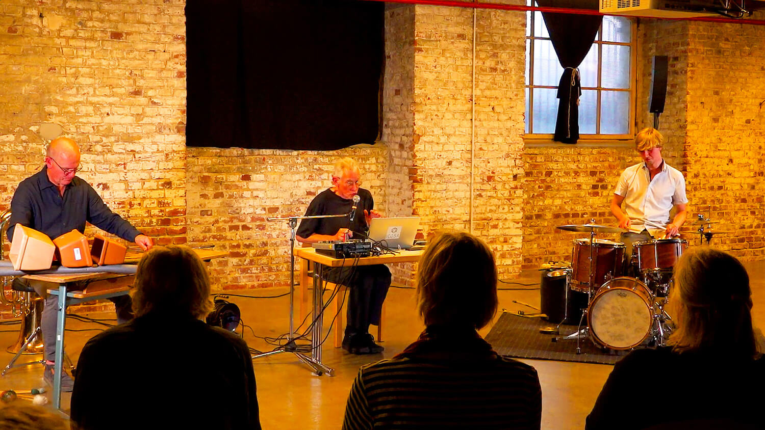 SOUNDSEEING – the Münsterland-wide sound art festival stands for high-calibre sound art in extraordinary locations. Voilá: Experimental, varied and very lively, we present excerpts from the live recording of the improvisation concert with the trio Jaap Blonk, voice and electronics | Steffen Roth, drums | Stephan Froleyks, percussion, tuba, new instruments | from the former spinning mill in the LWL-Museum Textilwerk Bocholt.